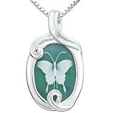 Amazon.com Collection P25820GRASS, All it takes is one of nature's most beautiful creatures to create the elegant design of the Sterling Silver Green Agate Butterfly Cameo Pendant. Gracefully placed at the bottom of an 18-inch box chain is an oval-shaped pendant design crafted in bright 925 sterling silver. The swirling metallic pendant trim frames a white cameo of a whimsical butterfly, surrounded by green agate stone. Finished with a spring-ring clasp, the 0.867-inch by 0.489-inch pendant will bring bold color and a flavorful design to any neckline. (Read More)